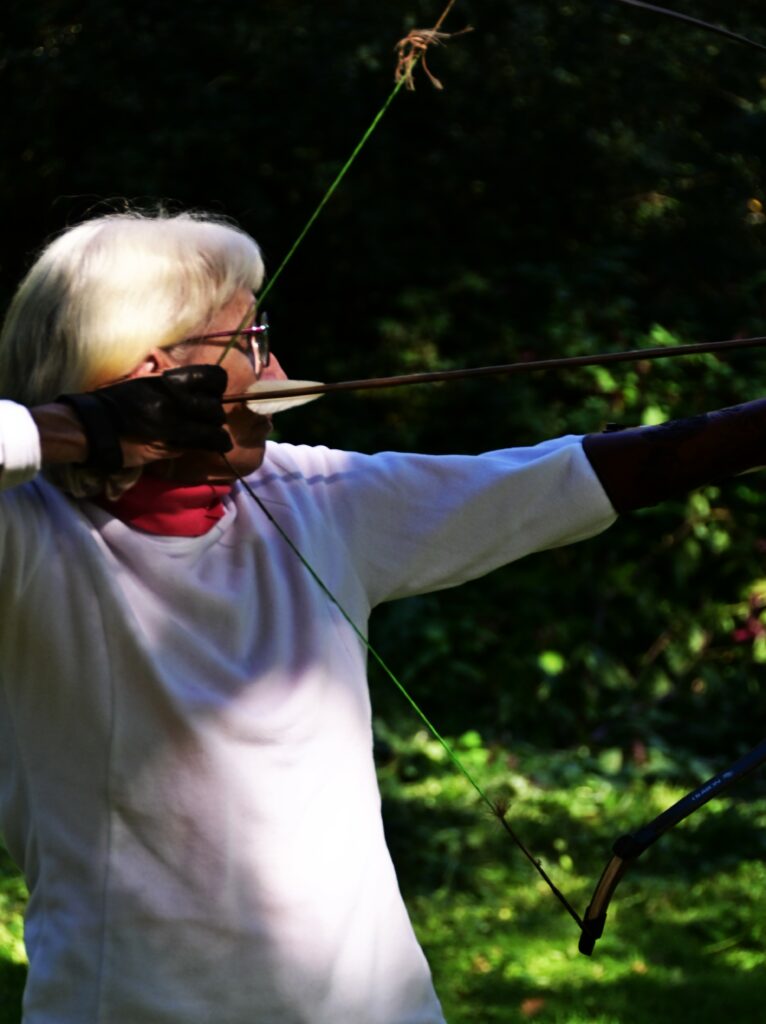 C’est avec des flèches tenant plus ou moins bien encochées sur la corde sans nockset d’un petit arc de type coréen que les adultes se sont évertués à atteindre l’oiseau en train de cuire, tandis qu’Arya, seule participante chez les enfants, a utilisé son grand arc pour tirer sur l’oiseau bleu.